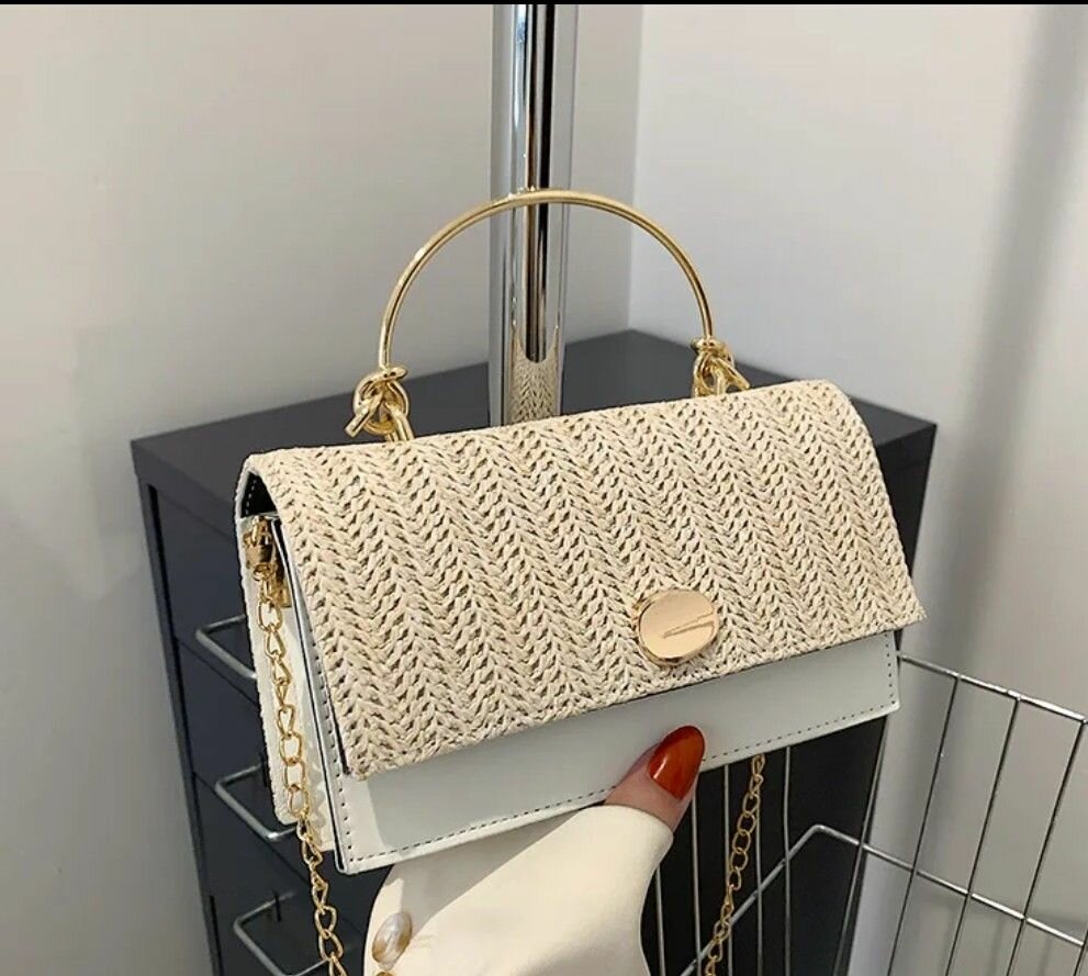Découvrez notre sac à bandoulière en paille tressée avec chaîne dorée. Parfait pour une touche chic à votre tenue quotidienne. Idéal pour les sorties, les fêtes, et plus encore. Offrez-vous le mélange parfait de style et de fonctionnalité !