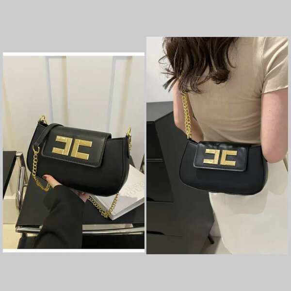 Découvrez un sac à bandoulière en cuir noir avec chaîne dorée, idéal pour vos sorties élégantes. Style raffiné et moderne, parfait pour compléter votre tenue avec une touche de luxe.