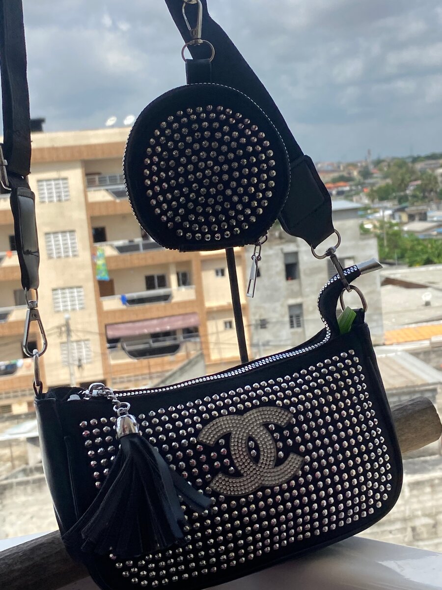 Ce sac à bandoulière en similicuir noir rehaussé de clous métalliques présente un design moderne et sophistiqué. Idéal pour un usage quotidien ou pour rehausser votre style lors d'événements spéciaux. Compact et pratique, il offre suffisamment de place pour tous vos essentiels. Parfait pour la femme moderne en mouvement.