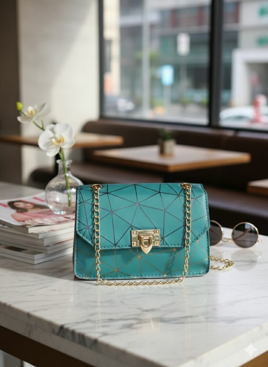 Ajoutez une touche d'élégance à votre tenue avec ce sac à bandoulière chic. Son design géométrique unique et sa chaîne dorée en font un accessoire élégant pour toute occasion. Suffisamment spacieux pour vos essentiels, il offre style et fonctionnalité.