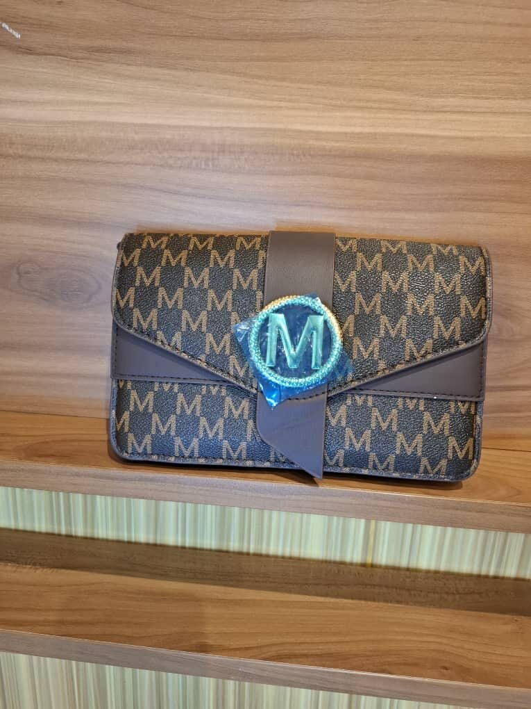 Élégant sac à bandoulière marron, parfait pour compléter votre look quotidien. Ce sac en simili cuir arbore un motif imprimé 'M' et une boucle décorative dorée distinctive. Idéal pour les sorties en ville, il combine style et fonctionnalité avec une fermeture sécurisée et une longue bandoulière confortable. Rehaussez votre garde-robe avec cet accessoire chic qui vous accompagnera partout.