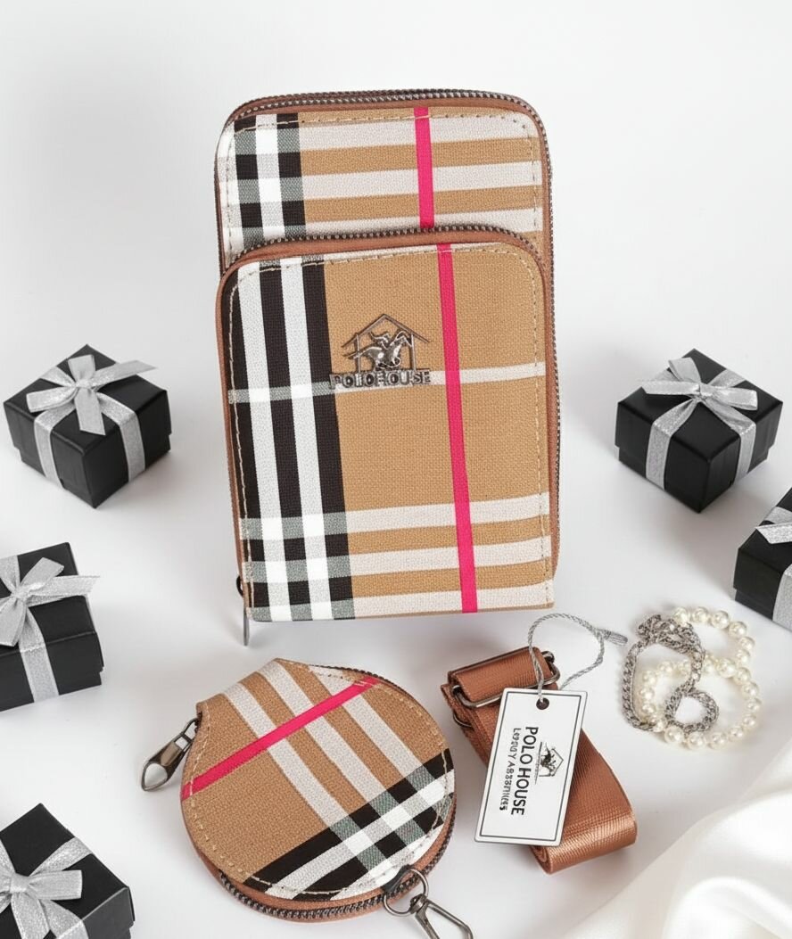 Optez pour ce sac à bandoulière Polo-House en similicuir avec son design à carreaux distinctif. Idéal pour les déplacements, ce set compact et chic saura compléter votre look quotidien tout en gardant vos essentiels à portée de main.