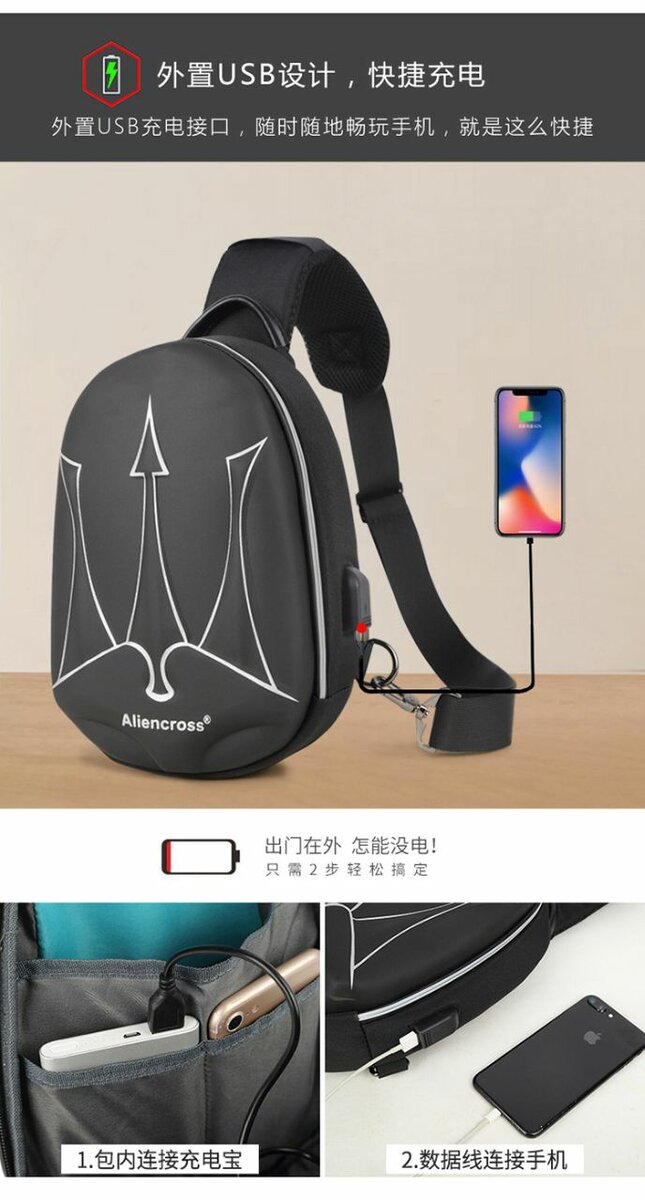 Sac à bandoulière pour hommes pour Nintendo Switch, sacoche de poitrine imperméable en tissu Oxford, Port de chargement Usb, Protection par mot de passe
