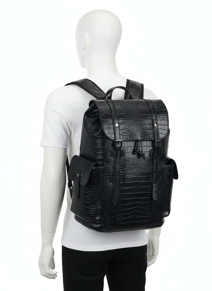 Sac à dos élégant et pratique en cuir noir, idéal pour le travail, les voyages ou les activités quotidiennes. Conçu pour les hommes qui apprécient le style et la fonctionnalité.