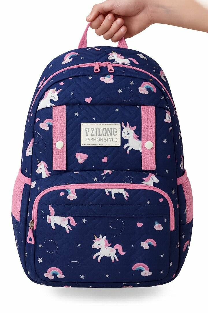 Adorable sac à dos enfant motif licorne, idéal pour l'école. Dispose de bretelles réglables et multiples poches pour un rangement pratique.
