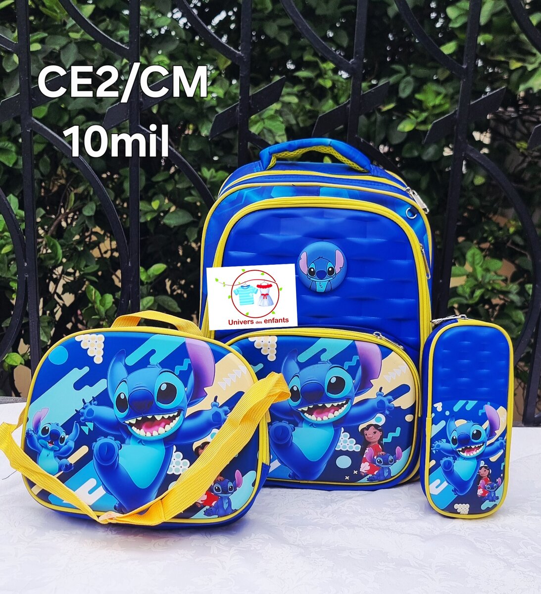 Ensemble sac à dos, trousse et lunchbox Stitch pour enfants. Idéal pour l'école avec son design vibrant et amusant. Durable et spacieux pour tous les essentiels de l'école.