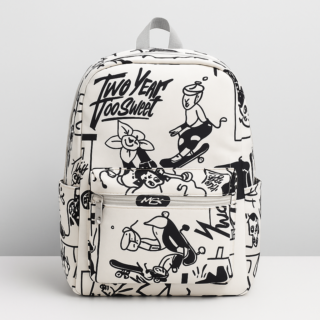 Optez pour ce sac à dos au design graphique unique, idéal pour les amateurs de street art. Avec ses illustrations audacieuses, il ajoute du style à chaque sortie. Parfait pour l'école, le travail ou les loisirs. Conçu pour un confort optimal avec ses bretelles ajustables. Un choix parfait pour ceux qui aiment se démarquer !