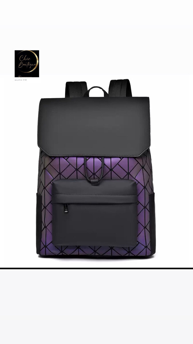 Découvrez le sac à dos holographique qui allie mode et praticité. Son design chic violet et noir avec motifs géométriques est idéal pour la vie urbaine. Parfait pour étudiants, voyageurs ou pour le quotidien. Doté d'un grand compartiment et d'une poche avant zippée, c'est l'accessoire indispensable pour transporter vos essentiels avec style.