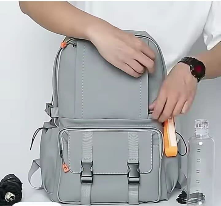 Sac à dos gris élégant, parfait pour le travail et les voyages. Conception robuste avec poches multiples, idéal pour étudiants et professionnels. Poignées confortables et fermetures sécurisées pour une utilisation quotidienne pratique.