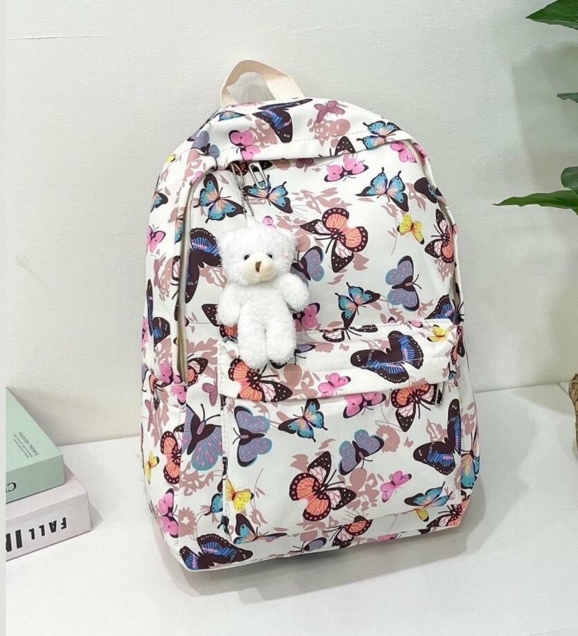 Ce sac à dos tendance avec motif papillons est l'accessoire parfait pour les passionnés de mode. Livré avec un adorable porte-clés ourson, ce sac offre à la fois style et praticité pour vos besoins quotidiens. Parfait pour l'école, le travail ou les sorties en ville. Durable et spacieux, il garantit confort et organisation.
