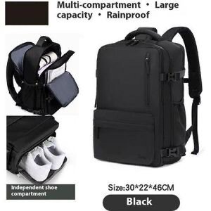 Sac à dos beige spacieux et moderne, idéal pour les voyages et la vie quotidienne. Comprend des compartiments pour vêtements et chaussures, garantissant organisation et praticité. Parfait pour les aventuriers et citadins actifs.