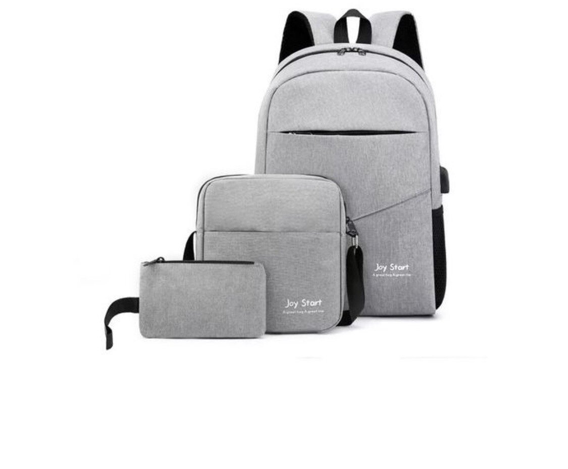 Sac à dos USB gris avec chargeur externe, idéal pour les étudiants et les voyageurs. Conçu pour le confort et la sécurité avec plusieurs compartiments.