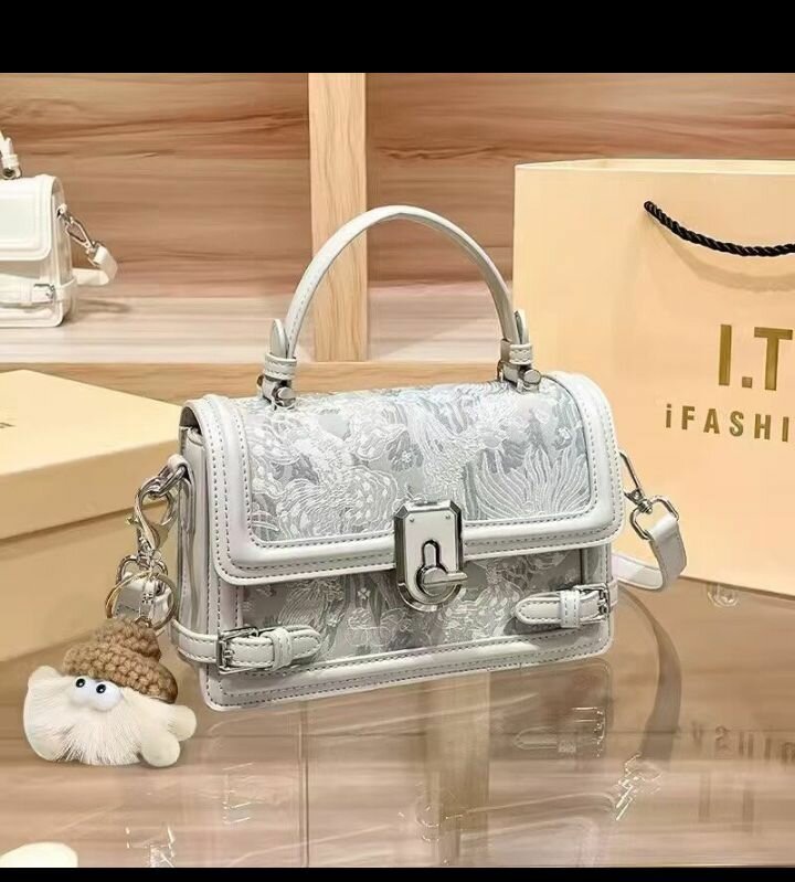 Découvrez ce magnifique sac à main argenté, orné de détails raffinés et d'une fermeture métallique. Parfait pour les occasions spéciales ou une tenue élégante au quotidien.