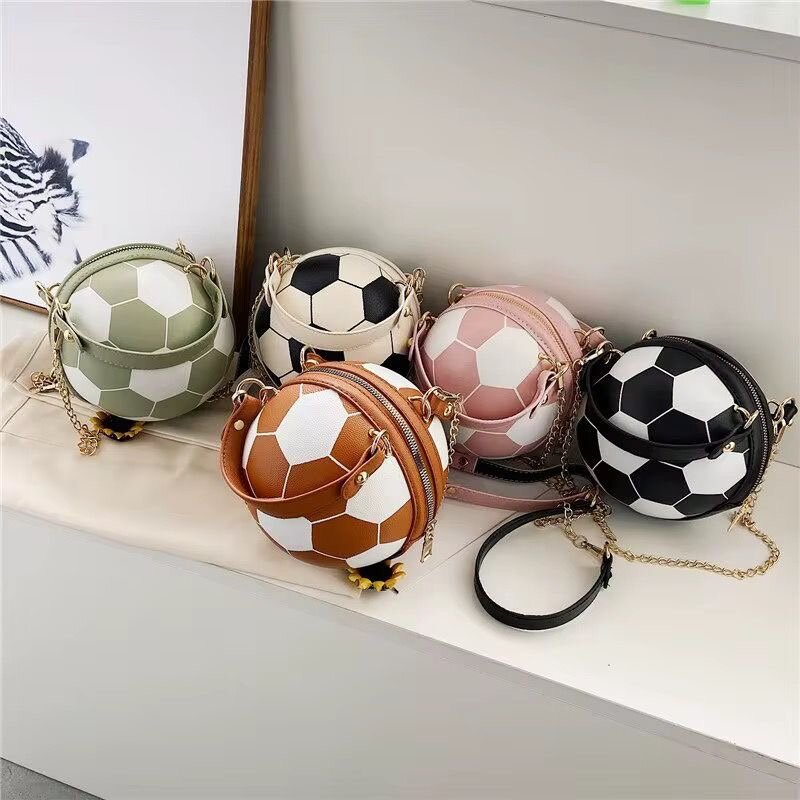 Optez pour ce sac unique en forme de ballon de foot. Parfait pour les passionnés de sport, il allie style et originalité avec une bandoulière chaîne dorée. Idéal pour un look sportif et chic !