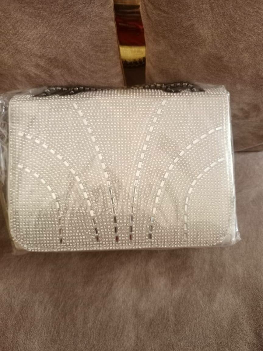 Sac à main élégant et raffiné, parfait pour des occasions spéciales. En strass blanc, il ajoute une touche de brillance à votre tenue.