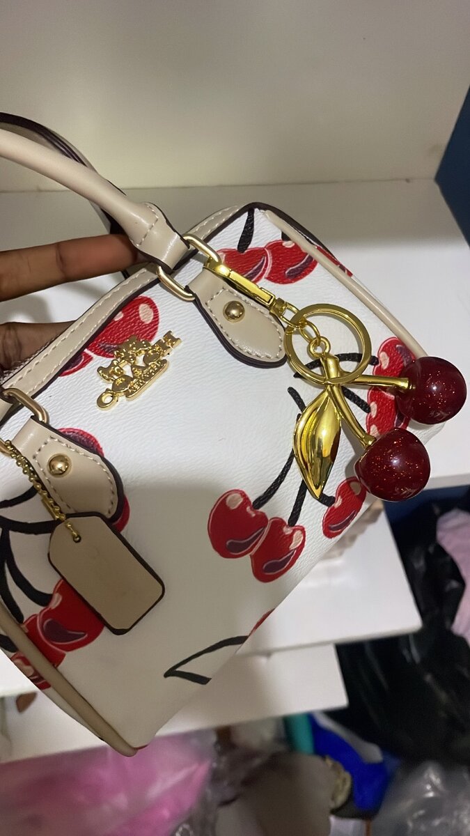 Ce sac à main élégant orné d'imprimés cerise et d'un pendentif cerise doré est l'accessoire parfait pour ajouter une touche de gaieté à votre tenue. Idéal pour les sorties en ville ou un événement estival, ce sac spacieux est à la fois stylé et pratique. Fabriqué avec des matériaux de haute qualité, il assure durabilité et confort.