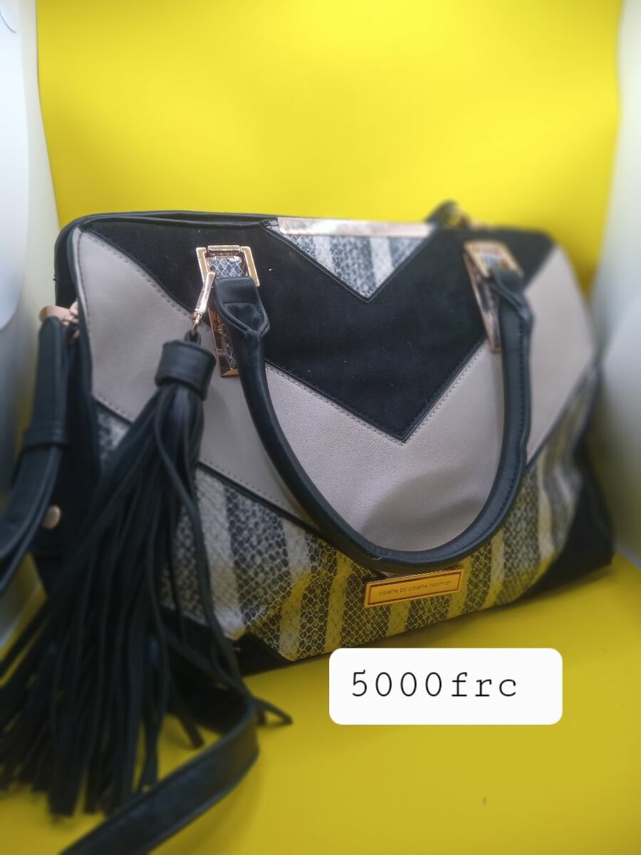 Ce sac à main friperie élégant est parfait pour les sorties ou le bureau. Fabriqué en similicuir de qualité avec des motifs modernes et une bandoulière pratique. Ses finitions dorées ajoutent une touche de luxe. Idéal pour compléter n'importe quelle tenue.