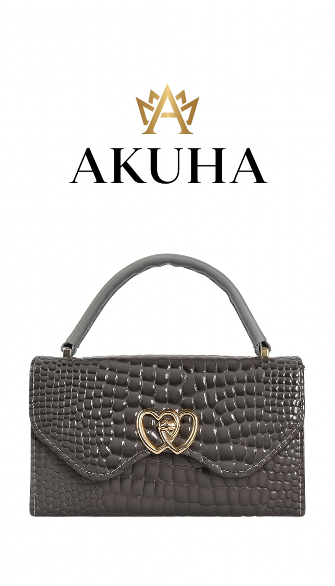 Découvrez le sac à main Akuha en simili-cuir croco avec une fermeture chic en forme de cœur. Parfait pour sublimer votre tenue de soirée ou vos sorties en ville.
