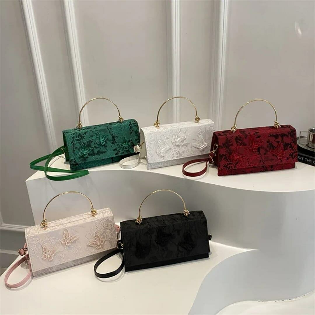 Ajoutez une touche de sophistication à votre tenue avec ce sac à main en dentelle brodée. Disponible en plusieurs couleurs, il est parfait pour les sorties occasionnelles ou formelles. Sa bandoulière ajustable et sa poignée dorée offrent confort et style. Idéal pour un usage quotidien ou une soirée élégante.