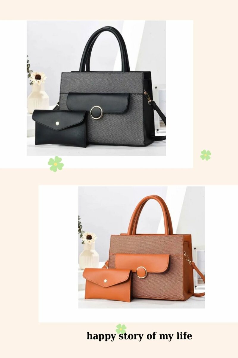Sac à main en cuir PU avec pochette assortie. Idéal pour le bureau ou les sorties, alliant style et fonctionnalité. Disponibles en noir et marron, parfaits pour compléter votre tenue.