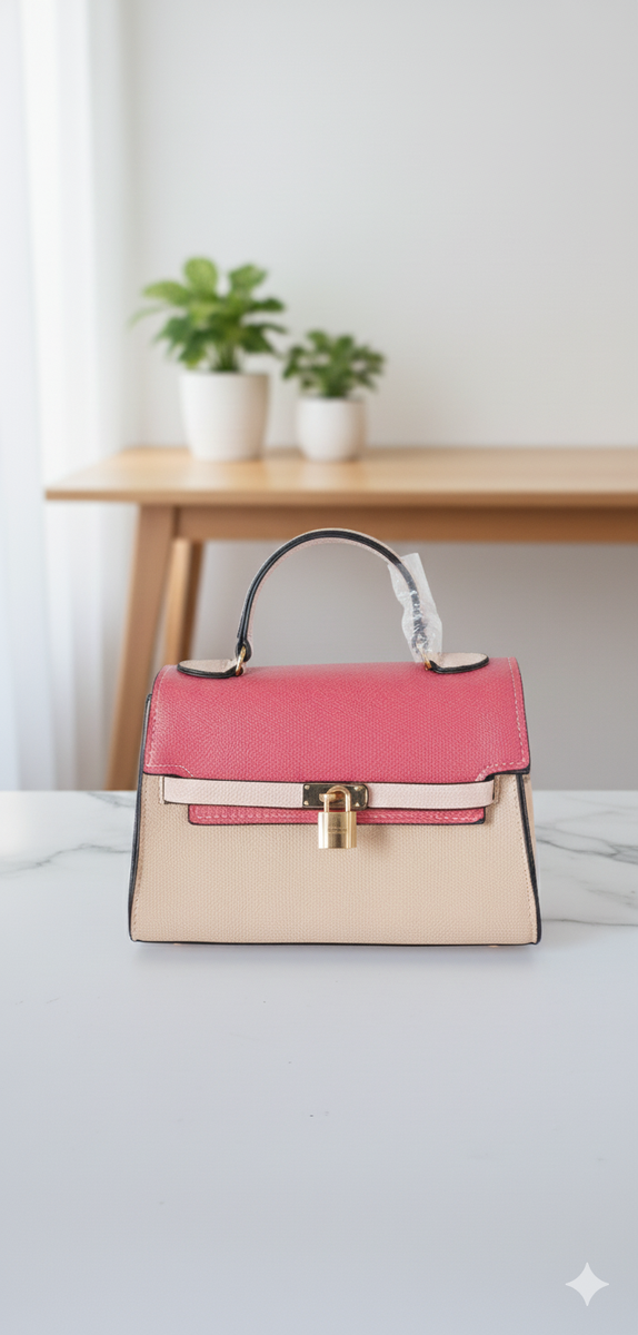 Ce sac à main bicolore en cuir PU est idéal pour ajouter une touche de sophistication à toute tenue. Avec sa fermeture sécurisée, il convient parfaitement pour le bureau ou les sorties en ville. Design compact et chic pour la femme moderne.