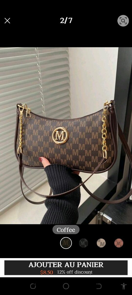 Découvrez ce sac à main chic avec un motif 'M' distinctif et des accents dorés. Parfait pour ajouter une touche de sophistication à vos tenues quotidiennes ou pour des occasions spéciales. Fabriqué avec des matériaux de haute qualité pour une durabilité accrue. Un accessoire indispensable pour toute modeuse.