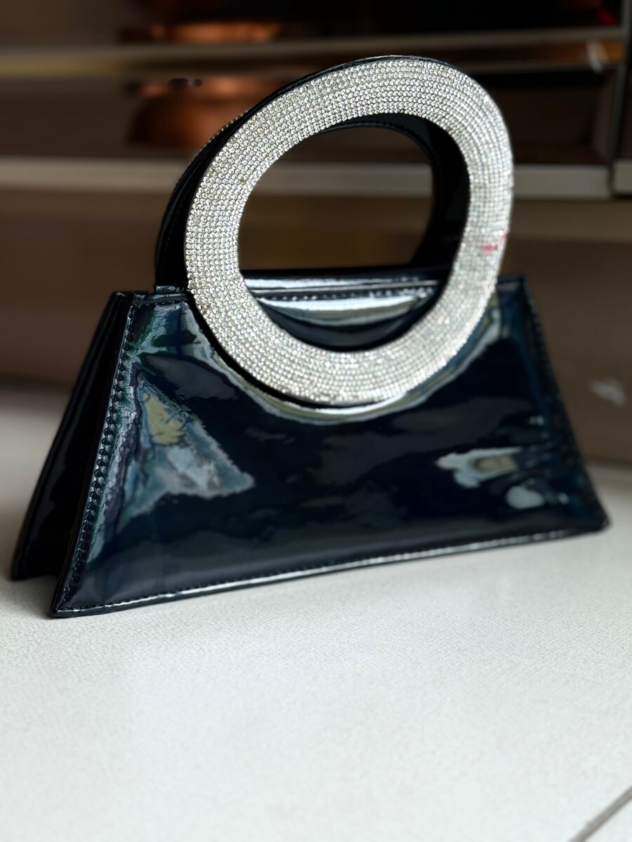 Découvrez ce sac à main chic et moderne, idéal pour toutes les occasions spéciales. Fabriqué en cuir noir brillant, il est doté d'une poignée circulaire ornée de strass scintillants qui captent la lumière. Parfait pour une soirée ou une sortie, ce sac ajoute une touche d'élégance à toute tenue. Compact mais spacieux, il accueille facilement vos essentiels. Optez pour ce sac tendance qui ne passe pas inaperçu!