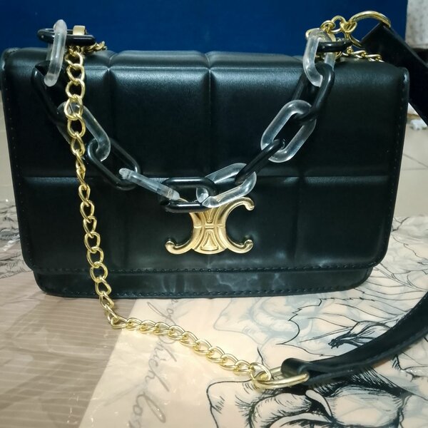 Raffiné et pratique, ce sac à main noir avec chaîne dorée est l'accessoire parfait pour toute occasion. Son design moderne et sa taille optimale le rendent incontournable.