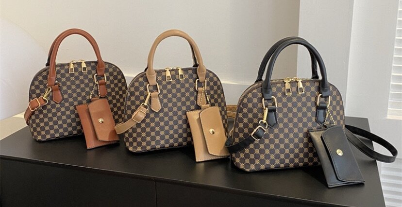 Découvrez ces sacs à main élégants avec motif à carreaux et cuir de haute qualité. Parfaits pour un look chic au quotidien, ils incluent une petite pochette assortie. Idéal pour les femmes modernes en déplacement.