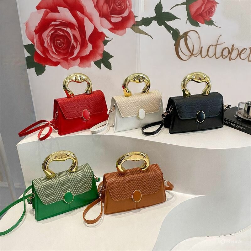 Optez pour un style chic avec ce sac à main élégant, disponible en plusieurs couleurs. Parfait pour les occasions spéciales ou l'utilisation quotidienne, il arbore une poignée dorée unique et une bandoulière pratique. Un choix incontournable pour les femmes modernes et élégantes.