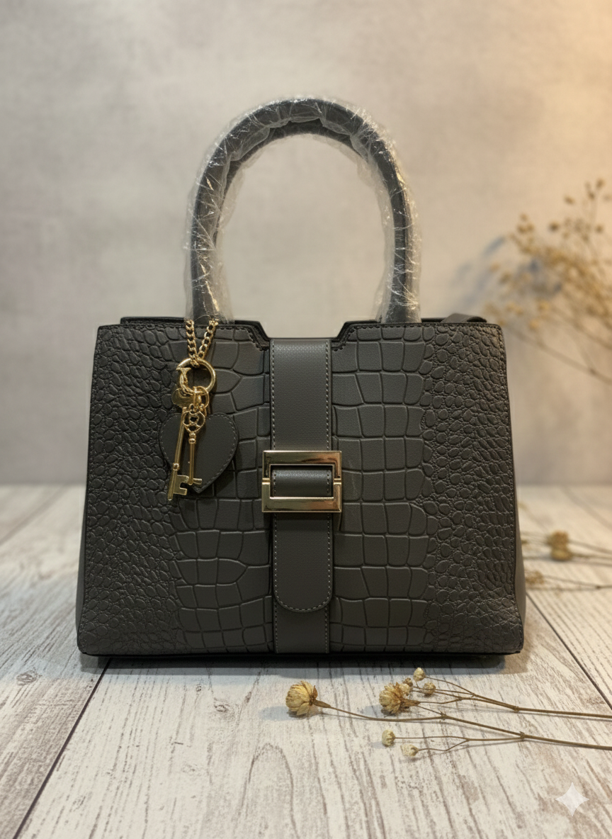 Ce sac à main chic est parfait pour ajouter une touche de sophistication à votre tenue. Idéal pour le bureau ou les sorties, il offre un espace généreux avec une fermeture sécurisée. Fabriqué avec des matériaux de haute qualité, ce sac est muni d'un charmant pendentif. Un choix parfait pour les femmes modernes et élégantes.