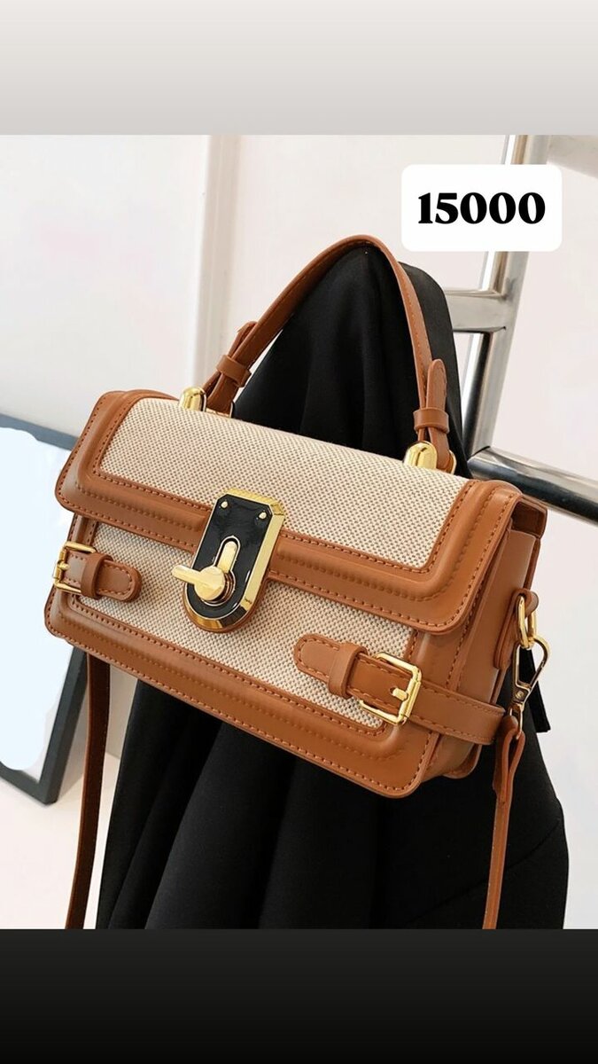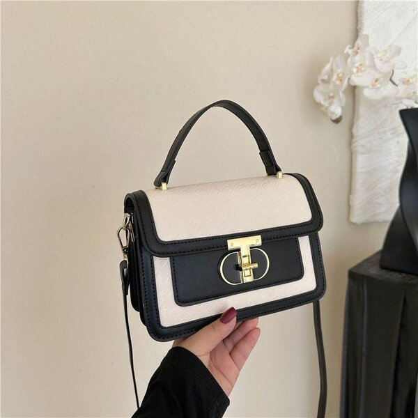 Sac à main en cuir et toile avec détails dorés, idéal pour une touche élégante à votre tenue. Parfait pour toutes occasions!