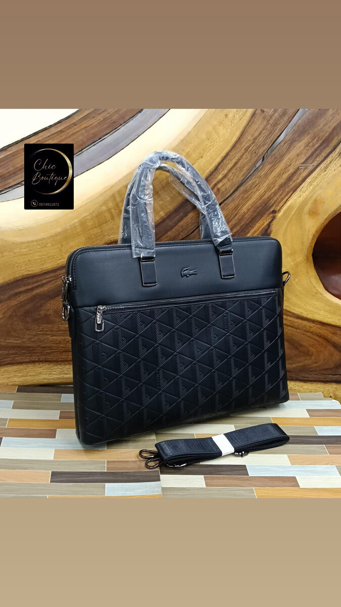 Sac à main élégant et pratique pour homme, fabriqué en cuir noir avec des motifs en losanges. Idéal pour le travail ou les loisirs.