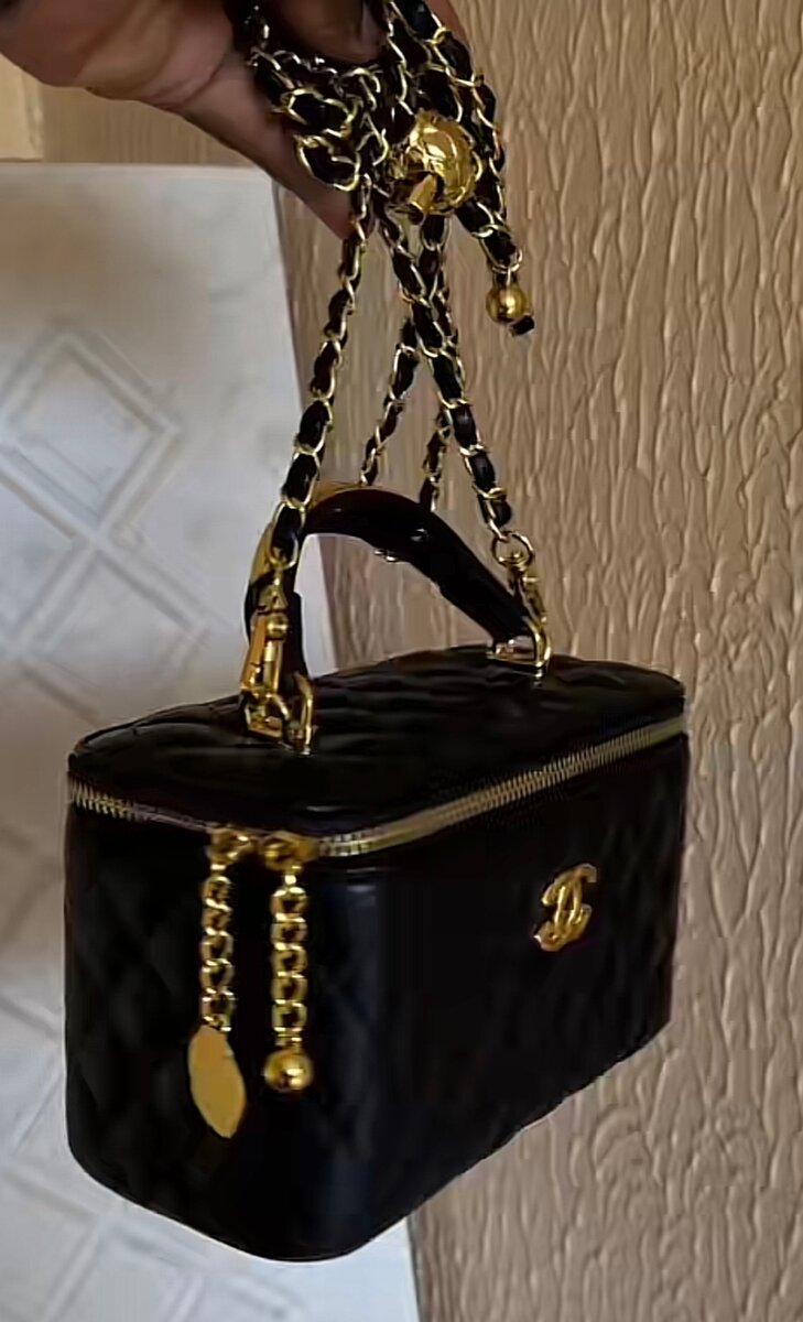 Découvrez ce sac à main élégant en cuir noir avec des détails dorés chics. Compact et stylé, il est parfait pour les soirées ou les sorties en ville. Sa bandoulière et son design unique ajoutent une touche de sophistication à n'importe quelle tenue. Idéal pour garder vos essentiels à portée de main avec style.
