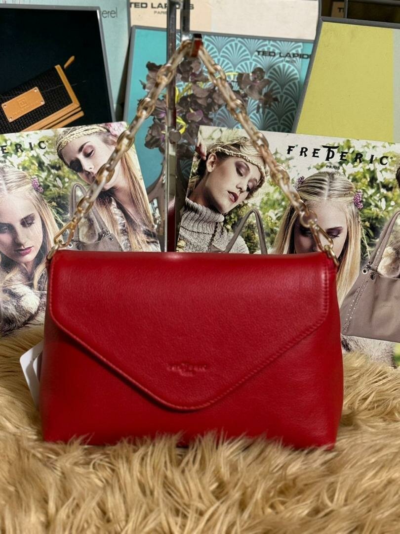 Élégant sac à main en cuir rouge avec chaîne dorée. Idéal pour les soirées et occasions spéciales. Conception moderne avec fermeture magnétique. Ajoutez une touche sophistiquée à votre tenue.