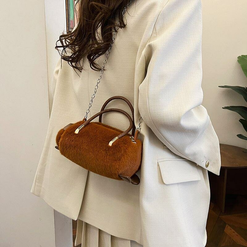 Ajoutez une touche de douceur à votre tenue avec ce sac à main en fourrure marron, parfait pour les sorties chics. Doté d'une sangle en chaîne dorée et d'une poignée en cuir, ce sac allie confort et élégance. Idéal pour les fêtes ou les dîners, il offre un espace suffisant pour vos essentiels. Une option incontournable pour sublimer votre style.