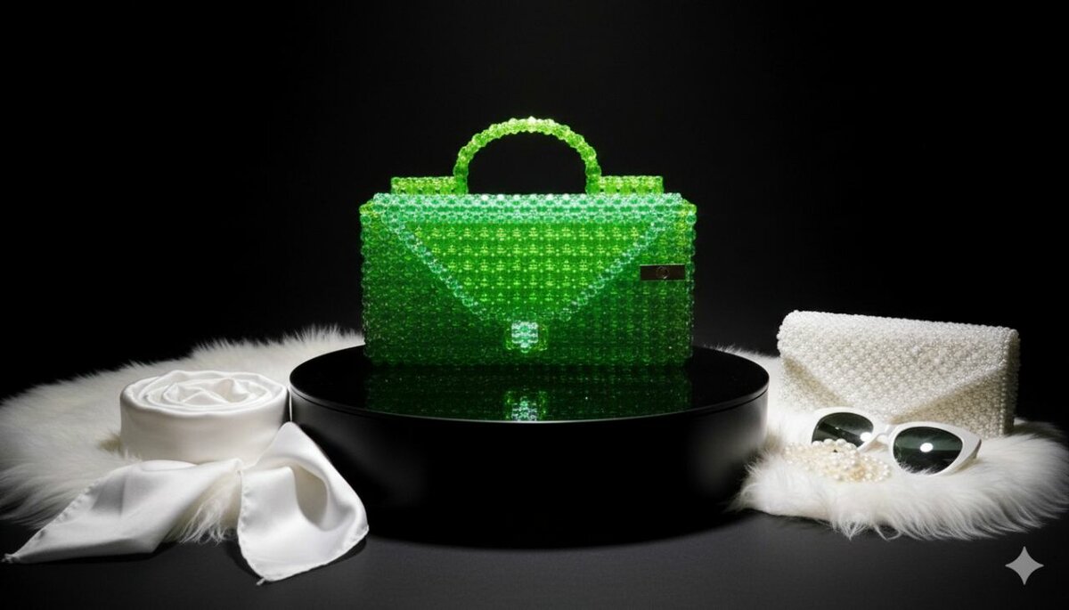 Ce sac à main vert en perles est l'accessoire idéal pour ajouter une touche d'élégance à votre tenue. Son design unique et ses matériaux de haute qualité font de ce sac un choix parfait pour toutes les occasions spéciales. Son format compact est à la fois pratique et stylé, vous permettant de transporter vos essentiels avec raffinement. Convient parfaitement pour des soirées ou des événements.