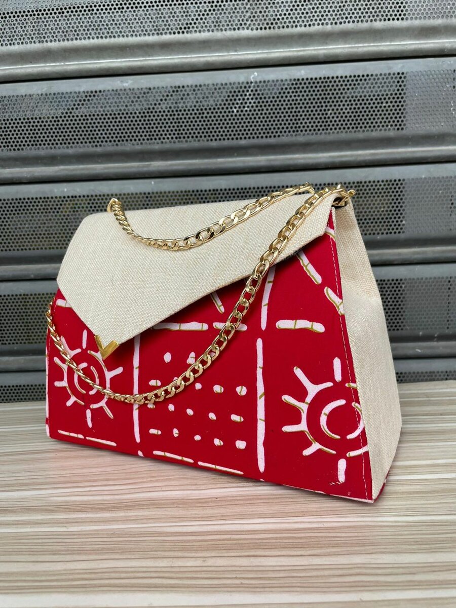 Ajoutez une touche d'élégance à votre tenue avec ce magnifique sac à main en wax. Parfait pour les sorties, il combine un design géométrique vibrant et des matériaux de qualité. Chaîne dorée pour un style sophistiqué et pratique. Idéal pour toutes les occasions.