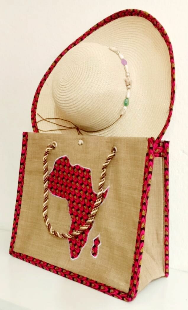 Sac à main en toile avec motif africain, accompagné d'un chapeau élégant. Parfait pour un style bohème et chic, idéal pour la plage ou les sorties estivales. Fabriqué avec des matériaux durables et design unique.