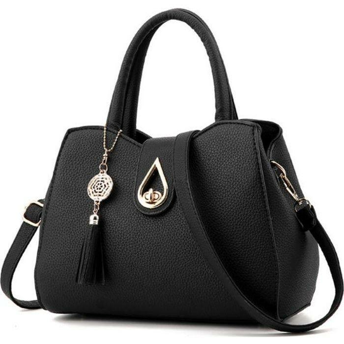 Sac à main en cuir noir texturé pour femme, style élégant avec accessoires en métal doré. Idéal pour usage quotidien ou soirée.