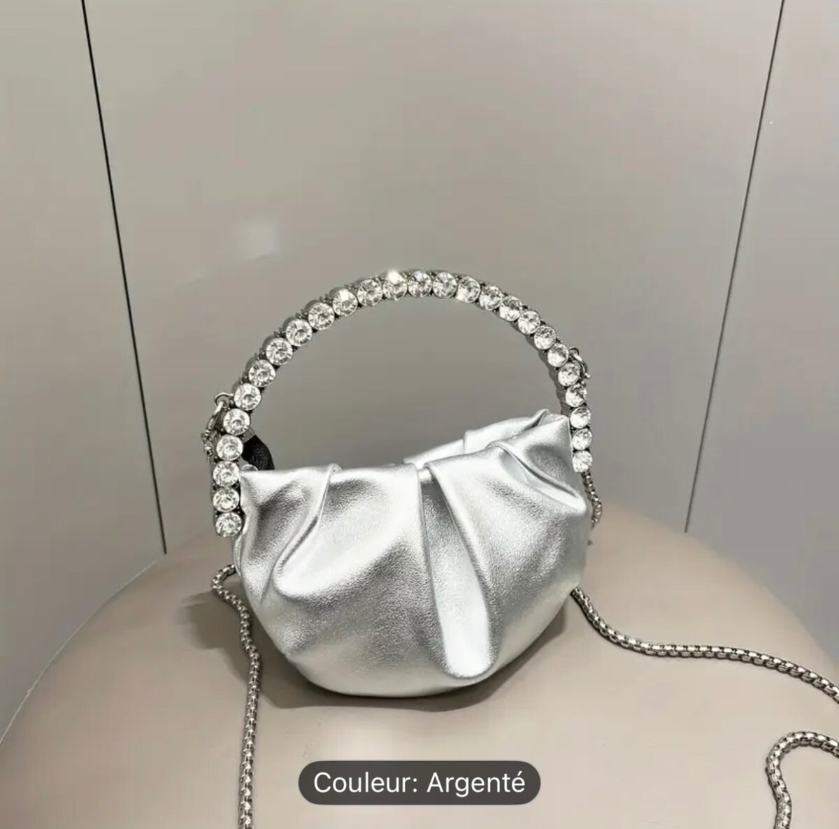 Élégant sac à main avec bandoulière ornée de cristaux. Disponible en or, rose et argenté. Parfait pour des soirées chic et des occasions spéciales, il ajoute une touche de glamour à toute tenue. Compact mais spacieux pour vos essentiels.