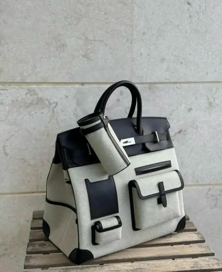 Sac à main élégant et pratique pour femme, gris et noir, avec plusieurs poches et compartiments. Idéal pour le travail ou les sorties.