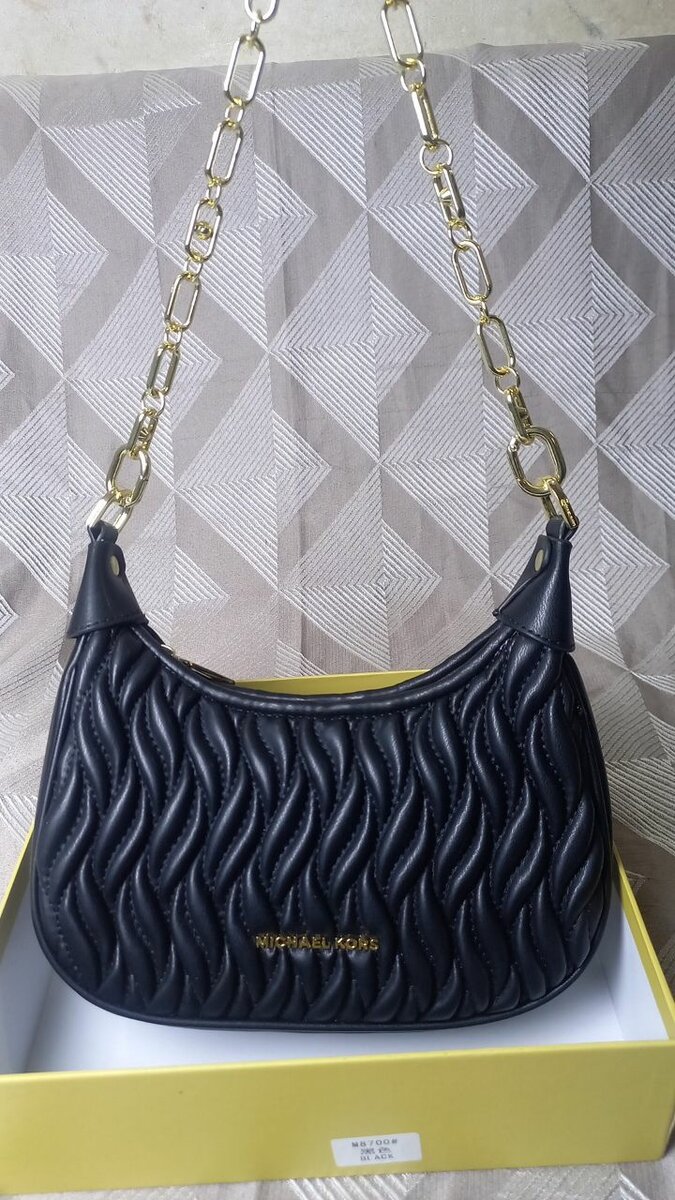 Ce sac à main noir Michael Kors, avec sa texture ondulée et ses détails dorés, est parfait pour chaque occasion. Conçu pour offrir style et fonctionnalité, il peut être porté à l'épaule ou en bandoulière grâce à ses différentes sangles. Idéal pour les soirées ou une utilisation quotidienne, ce sac est l'accessoire indispensable pour rehausser votre look.