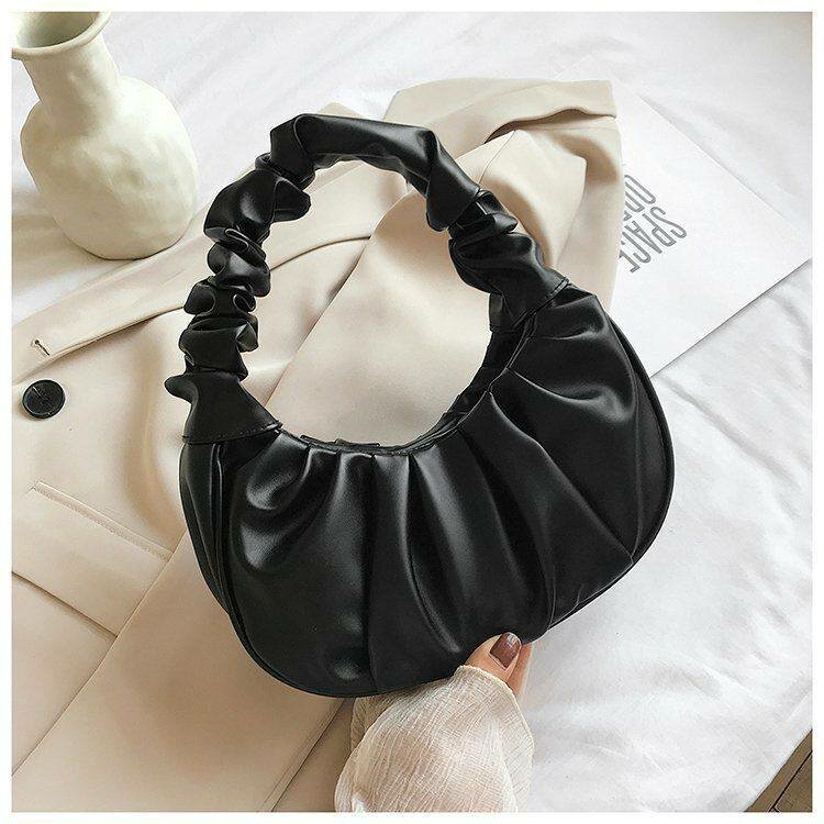 Ce sac à main chic en simili cuir noir est parfait pour compléter votre tenue. Compact et élégant, il dispose d'une anse unique plissée offrant un style moderne. Idéal pour un usage quotidien, ce sac s'harmonise facilement avec divers looks, apportant une touche sophistiquée à votre style. Un accessoire incontournable pour les soirées ou les déjeuners en ville.