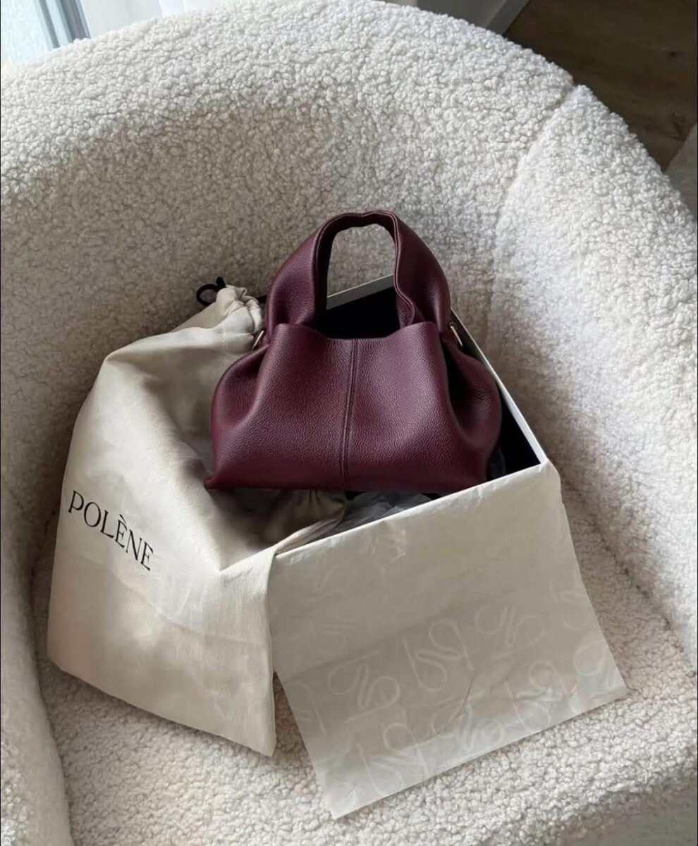 Découvrez l'élégance du sac à main Polène en cuir bordeaux. Parfait pour un look chic et sophistiqué, idéal pour toutes occasions. Suffisamment spacieux pour vos essentiels quotidiens, il allie style et fonctionnalité. Un incontournable pour toute garde-robe moderne !