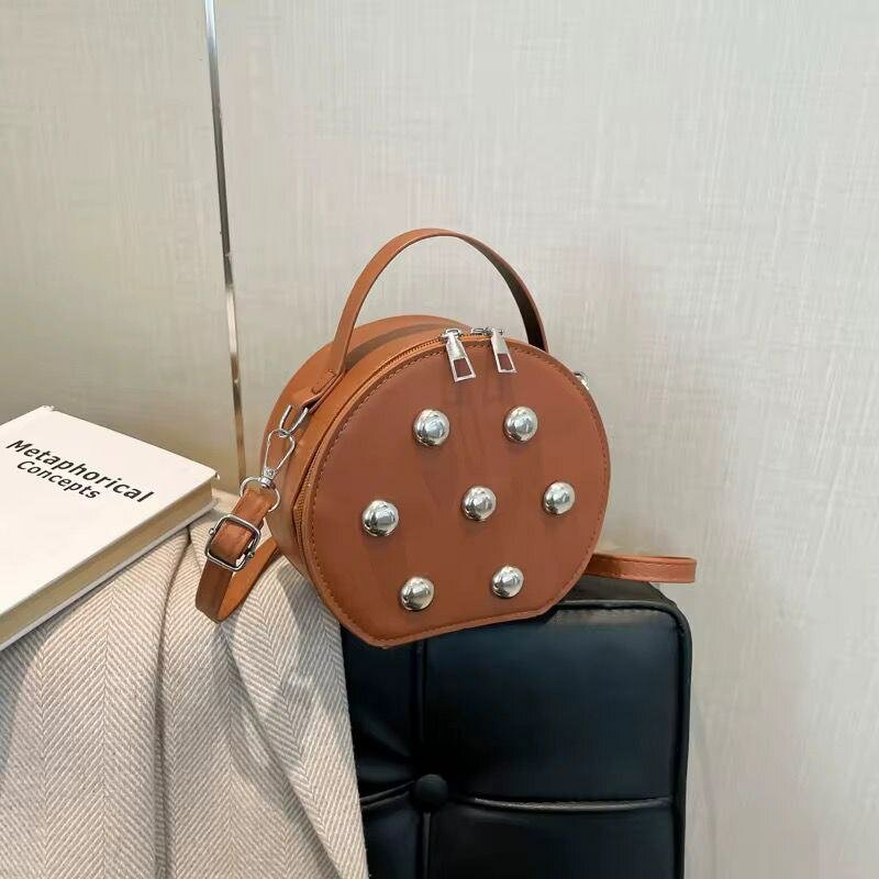 Ajoutez une touche moderne à votre tenue avec ce sac à main rond clouté. Idéal pour un usage quotidien ou les sorties, il s'accorde avec toutes vos tenues grâce à sa couleur neutre et son design élégant. Fabriqué en matériaux de qualité, il est à la fois stylé et durable. Parfait pour les fashionistas en quête d'originalité.