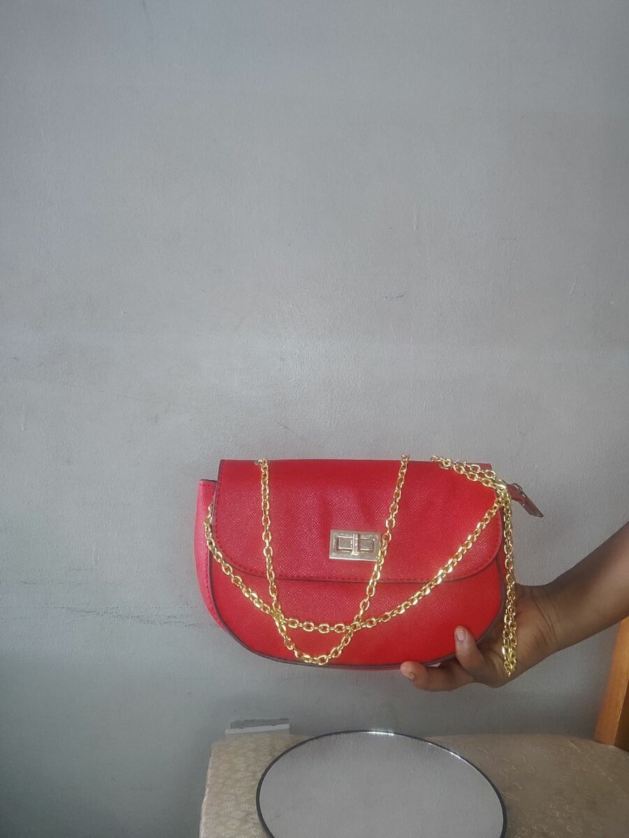 Élégant sac à main rouge avec chaîne dorée. Parfait pour les sorties en soirée ou les événements spéciaux. Design chic et moderne, idéal pour rehausser n'importe quelle tenue. Compact mais spacieux pour vos essentiels.