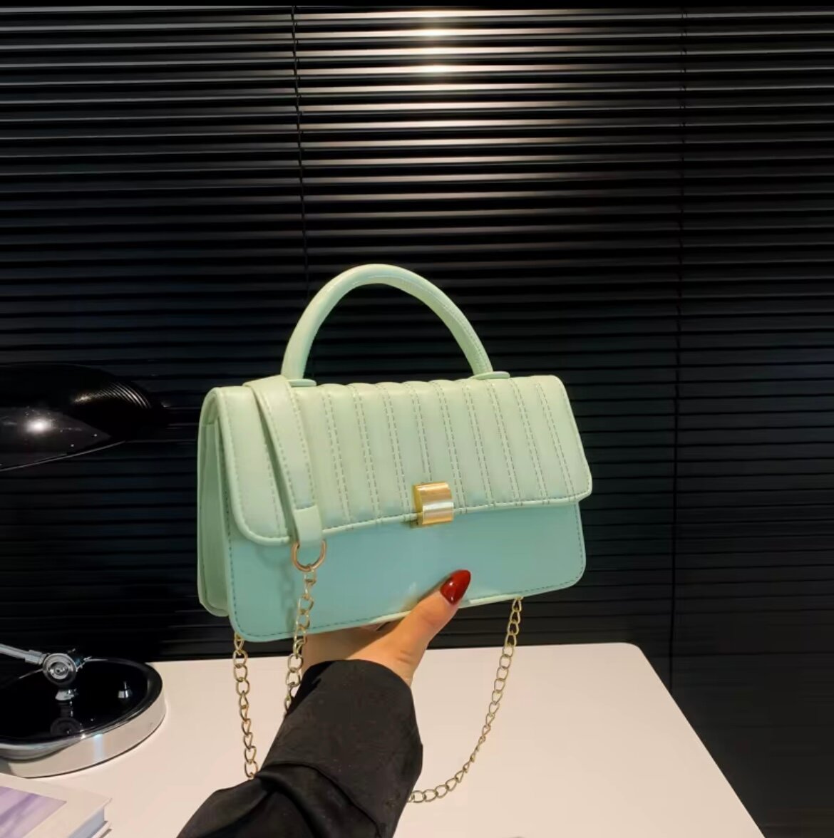 Découvrez ce sac à main élégant au design moderne, parfait pour les sorties ou le bureau. Fabriqué avec des matériaux de haute qualité, il offre une finition impeccable et une chaîne dorée tendance. Ce sac est suffisamment spacieux pour tous vos essentiels, alliant praticité et style. Un choix idéal pour sublimer vos tenues au quotidien.