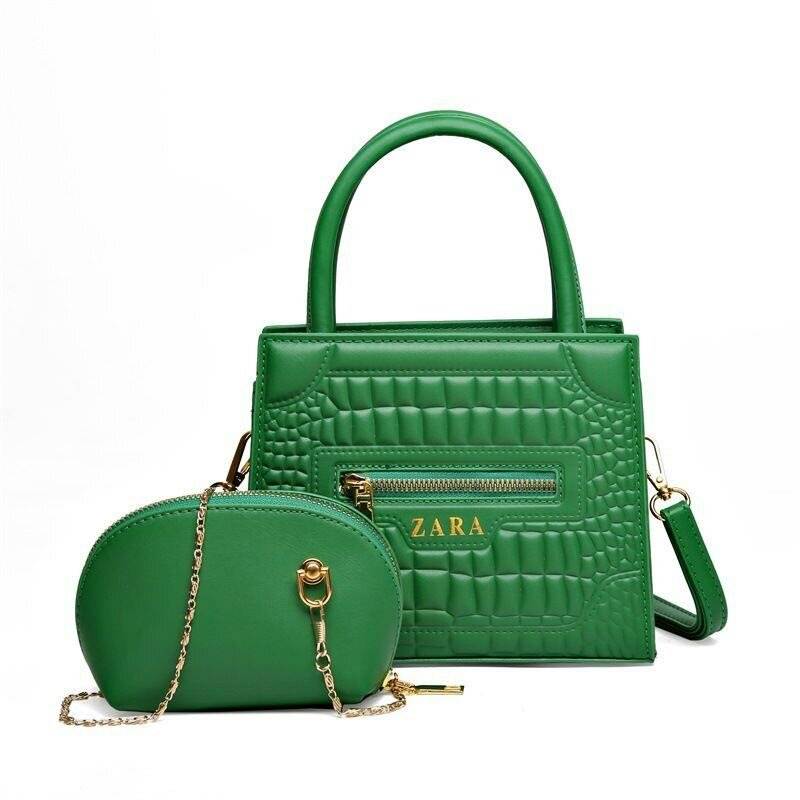 Optez pour ce sac à main vert élégant avec motif croco et sa pochette assortie. Parfait pour rehausser votre tenue, ce set est idéal pour un look chic au quotidien ou une sortie spéciale. Offrez-vous une touche de luxe et de style.