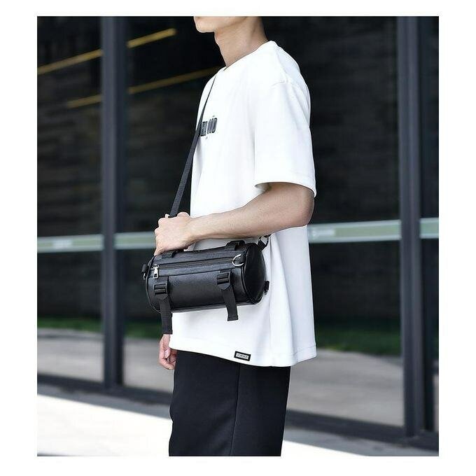 Sac banane en cuir noir, idéal pour les hommes à la recherche d'un accessoire élégant et pratique. Dimensions: 22cm x 12cm x 12cm. Parfait pour transporter vos essentiels en toute occasion.